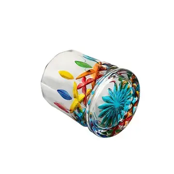 "Blossom" Handpainted Crystal Tumbler with Aqua Bottom